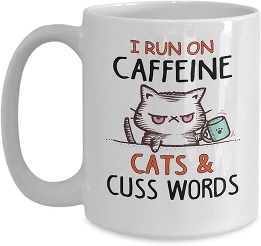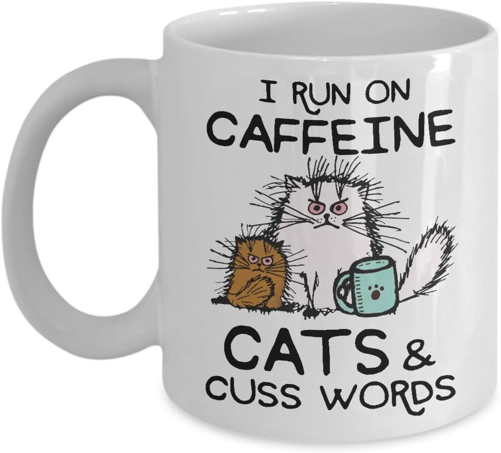 Amazon Com I Run On Caffeine Cats And Cuss Words Mug Funny Coffee Mug Cat Coffee Mug Cat Lover Gift Cat Owner Gift Coffee Mug For Cat Lovers Birthday Gift Idea For Him